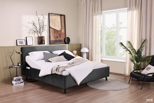 Das SENIOR+Komfort-Liftbett als Doppelbett bleibt optisch ein echtes Design-Statement. Hochwertige Stoffe, verschiedene Farben und stilvolle Kopfteilvarianten machen es zu einem zentralen Element im Schlafzimmer.