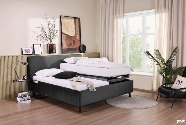 Die integrierte Lift- und Schräglagefunktion unterstützt Sie beim komfortablen Aufstehen – sanft, stabil und sicher. Jede Bettseite lässt sich einzeln anheben.